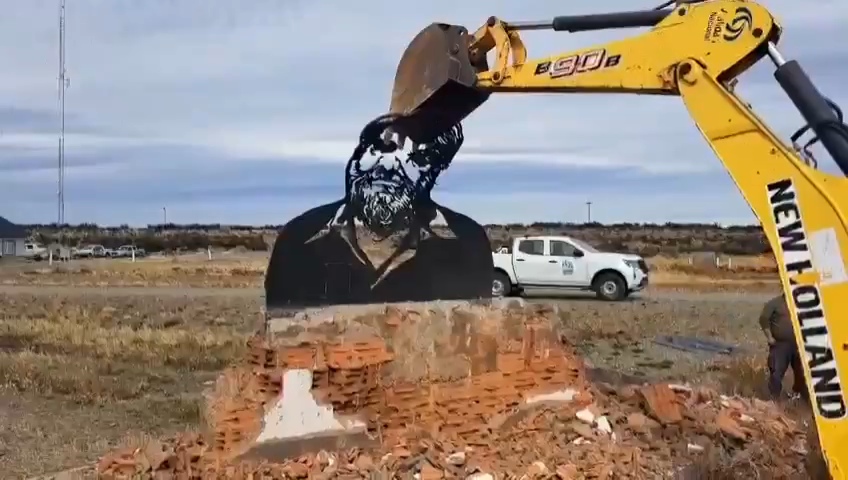 Erigida a la vera de la Ruta 3, en el ingreso a Río GallegosSanta Cruz, la estructura no resistió el embate de las máquinas de Vialidad Nacional, que, como si ejecutaran una orden inapelable del poder central, la redujeron a escombros con una pala mecánica y un martillo hidráulico.