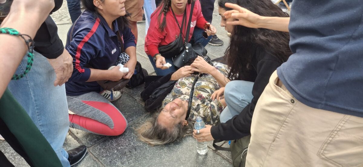 En un nuevo vergonzoso episodio de represión, la Policía Federal agredió brutalmente a una jubilada (ver abajo) que participaba este miércoles de la movilización frente al Congreso para protestar contra el ajuste de Javier Milei.