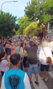 Uno de los vecinos, que fue entrevistado por el canal de noticias C5N, sostuvo que fueron «a reclamar juntos» para que se vaya «este Gobierno de corruptos». «Mientras cagan a palos a los jubilados, cagan de hambre al pueblo y a los laburantes los echan de sus puestos de trabajo, vemos como estafan guita y cobran coimas», enfatizó.