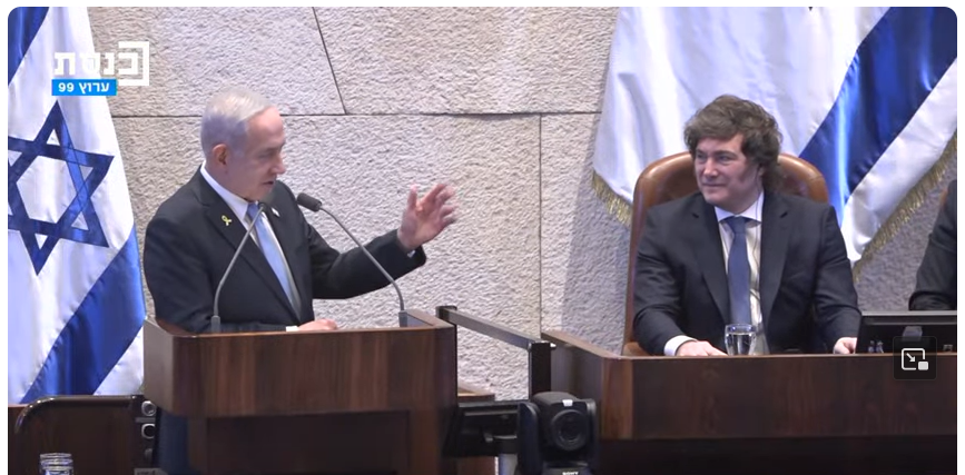 Ambos dirigentes no escatimaron elogios y gestos de complicidad, presentándose como garantes del “mundo libre” (eufemismo utilizado por Estados Unidos durante la “Guerra Fría). “Las naciones que defendemos la cultura occidental tenemos que estar juntas, estableciendo nuevos lazos políticos, comerciales y militares. Israel es nuestro socio estratégico más importante, junto con Estados Unidos”, apuntó el esperpento argentino.