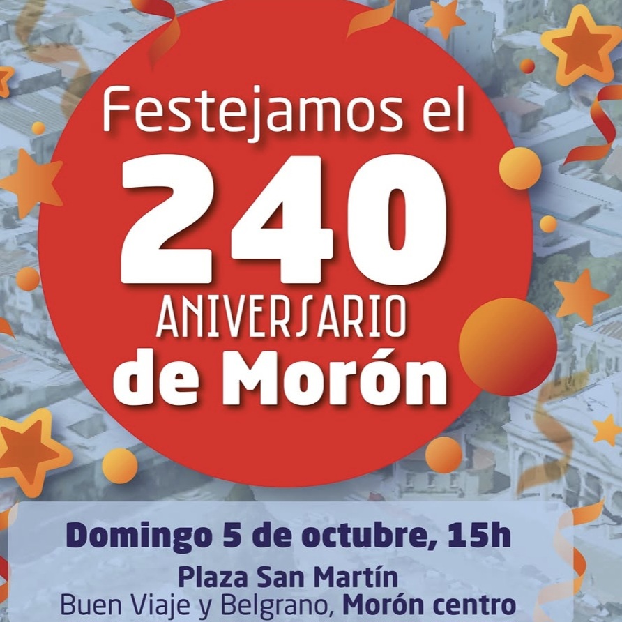 Con motivo del 240 aniversario del Municipio de Morón, el intendente Luca Ghi invita a los festejos populares que se realizará el domingo 5 de octubre desde las 15hs en Plaza San Martín.