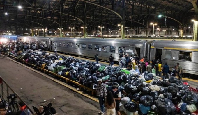 El argentino, es un pueblo solidario. Cargando toneladas de donaciones recibidas en sindicatos, clubes de fútbol, municipios, universidades y otras organizaciones libres del pueblo, el Tren Solidario partió desde el andén 14 de Constitución con once vagones cargados con mercadería para los miles de afectados por el trágico temporal ocurrido en Bahía Blanca. El convoy realizará tres paradas en su recorrido: Cañuelas, San Miguel del Monte y Las Flores, donde se sumarán más insumos antes de continuar hacia el sudoeste bonaerense. La iniciativa cuenta con el apoyo de los sindicatos La Fraternidad, Unión Ferroviaria y Unión Personal Superior Ferroviario.